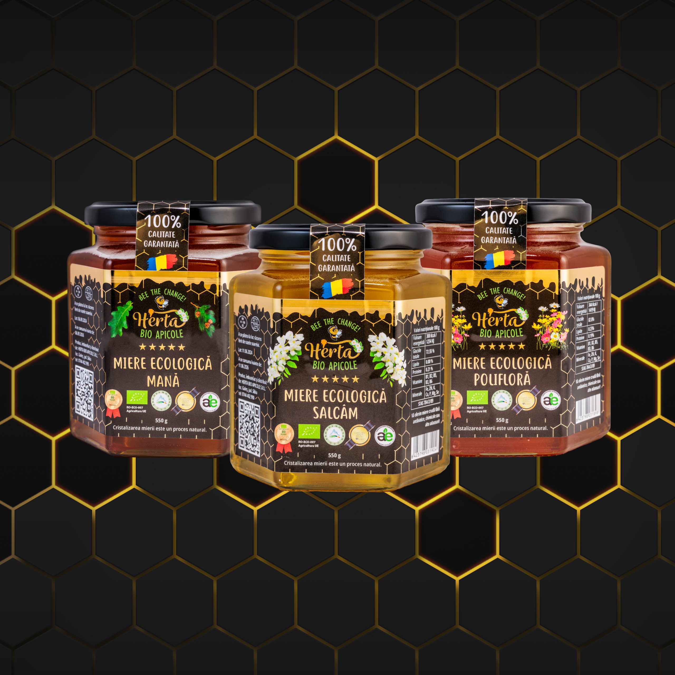 Pachetul combo 550g de la Herța Bio Apicole conține: