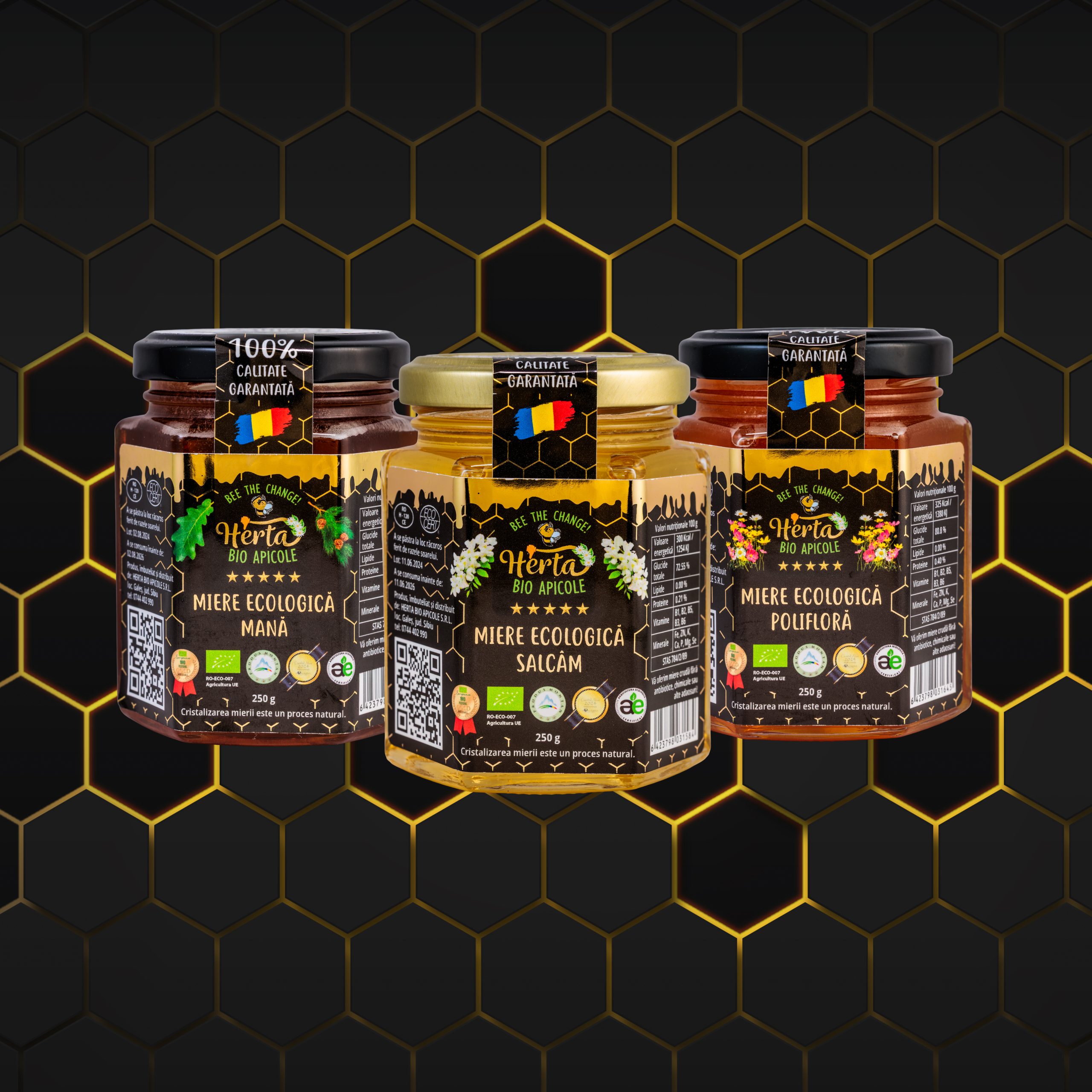 Pachetul combo 250g de la Herța Bio Apicole conține:
