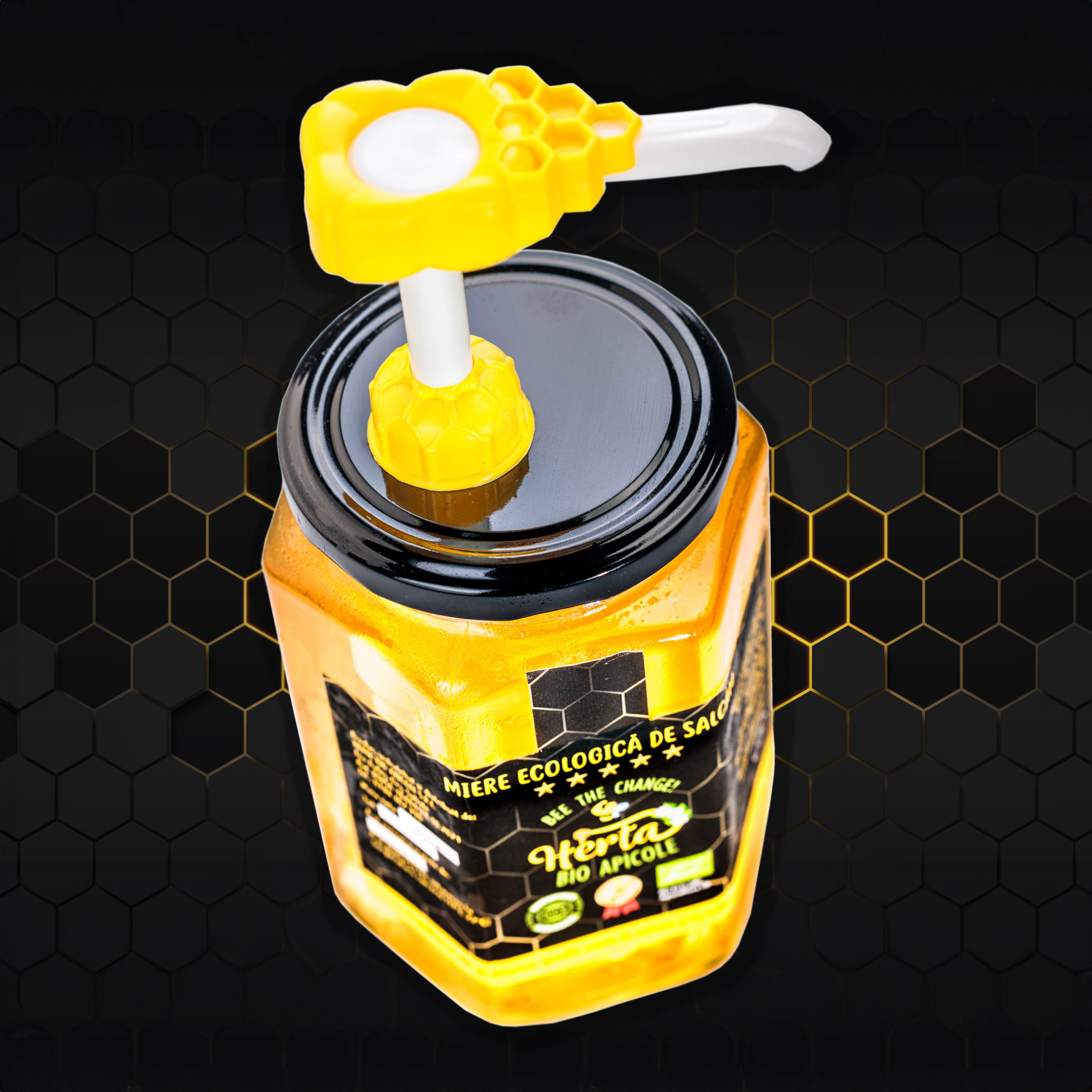 Pompa dozatoare este accesoriul ideal pentru borcanele de 1000g de miere, concepută special pentru a-ți oferi o utilizare comodă și precisă, fără picurare sau murdărirea capacului. Perfectă pentru bucătării, restaurante, ceainării sau consum casnic frecvent.